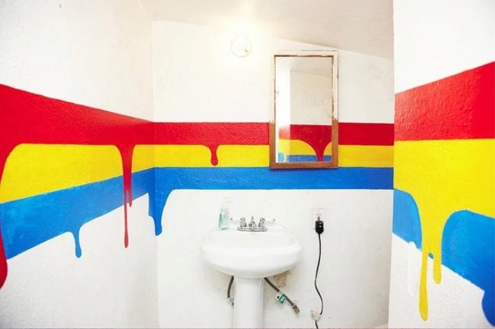 - نمط ثنائي اللون مثير للإعجاب. مثل هذا الجدار يجعل الجزء الداخلي للغرفة رائعًا ببساطة..
