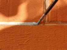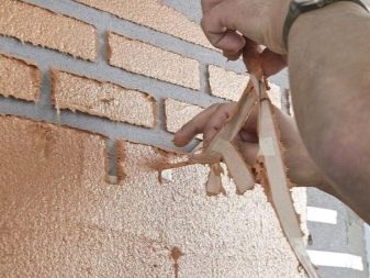 يتم تطبيق خليط الجبس بمجرفة عريضة ، ثم يتم تسويتها. يتم تمييز اللحامات بعد أن يجف المحلول ، ولكن لم يتم انتزاعها بالكامل بعد. لوضع العلامات ، تحتاج إلى إرفاق قاعدة على الحائط ورسم اللحامات. يمكن أن يختلف العرض من 5 إلى 10 مم ، نوصي بتجنب الوصلات الواسعة والعميقة جدًا باستخدام طريقة التطبيق هذه.
