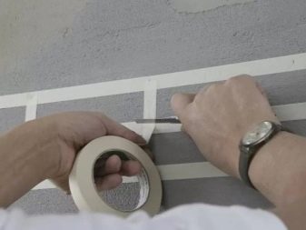 شريط التقنيع هو أداة شائعة لتصوير اللحامات., على الرغم من أن هذه الطريقة أكثر صعوبة من الأولى. أولاً ، يتم تجهيز الجدران ، ثم يتم رسم طبقات المستقبل في الأعلى (يمكنك استخدام قلم رصاص عادي). يتم تطبيق الشريط اللاصق على طول الخطوط ، ويجب أن تتجاوز نهاياته حدود قسم الجدار المراد معالجته. يجب لصق الشريط مع تداخل.