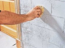 - لتصوير نسيج الطوب ، يمكنك استخدام مواد مختلفة – إسفنجة طبيعية ، ومنشفة معدنية لغسل الأطباق ، وفرشاة أحذية وأكثر من ذلك بكثير. عند طباعة إسفنجة طبيعية على جص مبلل ، يتم الحصول على نمط نسيج طبيعي جميل جدًا.