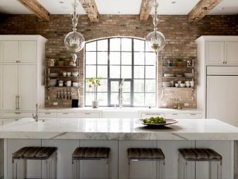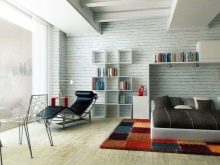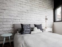- يمكن تبييض الجدران التي تم تشطيبها بجص يشبه الطوب – سيتم إضافة الضوء والهواء على الفور إلى الغرفة. يتماشى هذا التصميم بشكل جيد مع الأثاث الحديث ، والتفاصيل المعدنية ، وإضافة عناصر نسيجية مشرقة (الوسائد ، والمفارش ، والستائر) إلى الداخل ستجعل الغرفة مملة.