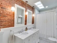 - لجعل المظهر النهائي طبيعيًا ، تم طلاء التقليد باللون البني من الطوب ، ويمكن جعل اللحامات أفتح أو أغمق. يبدو تشطيب القرميد متناغمًا في التصميمات الداخلية لأسلوب الدور العلوي الحضري الحديث. يكاد يكون من المستحيل التمييز بين التقليد عالي الجودة والجدار الحقيقي من الطوب.!