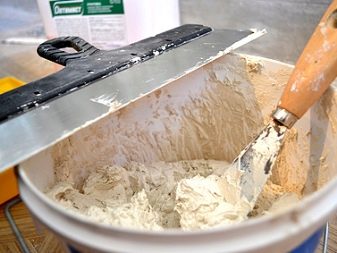 - لصنع الجبس الخاص بك على الخشب ، تحتاج إلى تخزين مكونات مثل الجير أو الجبس أو الأسمنت. يتم خلط هذه المكونات بالماء. بعد ذلك ، يضاف رمل الكوارتز كمادة مالئة..