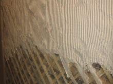 في عملية وضع خليط الجبس عند مفاصل الأقسام الخشبية بقواعد خرسانية أو حجرية ، يمكنك تثبيت شبكة معدنية.