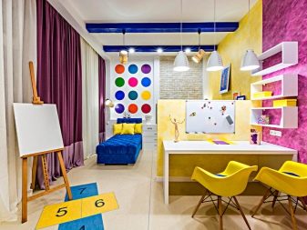 إذا قمت بتقليم غرفة الاطفال, ثم يمكن استبدال الألوان الرمادية الباهتة ، بالنسبة لأسلوب الدور العلوي ، أو ألوان الباستيل المحنكة ، كما هو الحال في الكلاسيكيات ، بألواح مشرقة و “حيوية”.