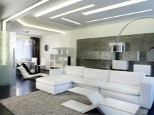 على هذه الخلفية ، ستبدو الزخارف والأجهزة والأثاث الحديثة للغاية بشكل عضوي. تسمح الأساليب المعاصرة بتناقضات قوية. على سبيل المثال ، على خلفية الجدران البيضاء أو الفضية ، المزينة بجص الحرير ، ستبدو عناصر مثل أريكة الزاوية السوداء أو الأريكة بالأبيض والأسود باهظة الثمن وأنيقة..