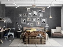 في مجموعات أسلوب الدور العلوي ، يمكنك استخدام الحلول الداكنة للحرير أو الطلاء ذي التأثير المعدني. على هذه الخلفية ، غالبًا ما يتم وضع أثاث أنيق وعصري ، وتفاصيل من الخشب الخام ، بالإضافة إلى السجاد الناعم والمريح ذي الظلال القاتمة (الرمادي والبني الباهت)..