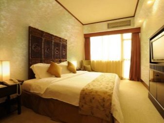 يجب اتباع نفس القاعدة إذا كنت تبحث عن جص حريري لغرفة نوم بالغين. في مثل هذه البيئات ، يجب أيضًا ألا تستخدم مواد تشطيب جريئة وجذابة. سوف يسعدون بسطوعهم في المرة الأولى فقط ، وبعد ذلك سيبدأون في الإزعاج.