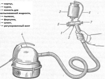 يتم وضع هذا الغطاء على الجرة ، وبعد ذلك يتم توصيل الفوهة بالمخرج. سوف يمتص تدفق الهواء في البخاخ التركيبة المعدة. سيصاحب انسحابه من خلال أنبوب الرش على السطح..