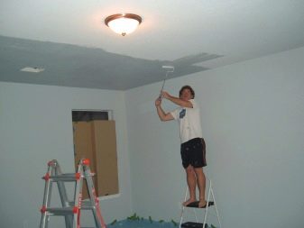 في أغلب الأحيان ، أثناء إصلاحات المنزل ، يتم تبييض الأسقف باستخدام الفرشاة أو الأسطوانة. يمكنك أيضًا استخدام مسدس رش أو مكنسة كهربائية خاصة لهذه الأغراض. ولكن في الوقت نفسه ، لن يستقر الطلاء على سطح السقف فحسب ، بل على الجدران والأرضية أيضًا. لذلك يوصى بتغطية جميع أسطح الغرفة ما عدا السقف..