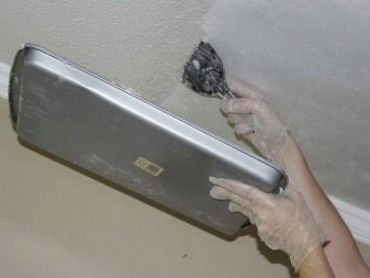 إذا كان الطلاء القديم يتكون من الجير ، فسيكون من الصعب إزالته. للقيام بذلك ، تحتاج أولاً إلى تبليل سطح السقف حتى ينعم الجير. لهذا ، يوصى باستخدام زجاجة رذاذ. ثم تتم إزالة طبقات النهاية القديمة بملعقة. في نهاية العمل يوصى بشطف سطح السقف بخرقة لإزالة ما تبقى من الجير والغبار..
