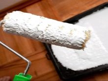 إذا كنت تخطط لاستخدام أسطوانة ، فيجب عليك أيضًا تحديد منصة نقالة يتم فيها ترطيب الأداة. سيوفر تطبيقًا سلسًا ومتساويًا للحل على سطح السقف. يجب أن يؤخذ في الاعتبار أن استخدام الأسطوانة سيكون من الصعب جدًا تبييض الأسطح في الأماكن والزوايا التي يصعب الوصول إليها. في هذه الحالة ، سوف تحتاج إلى استخدام فرشاة.