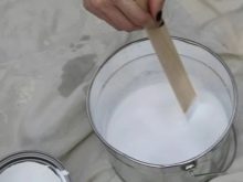 عند التبييض بالطباشير أو الجير ، سيتعين عليك إعداد حلول خاصة. إذا تم استخدام الطلاء المائي ، فيمكنك شرائه من منافذ البيع بالتجزئة الجاهزة. ولكن يجب ألا يغيب عن البال أن استهلاكه يمكن أن يكون مرتفعًا جدًا. لذلك ، يُنصح بشراء طلاء بهامش ما لضمان تظليل موحد للسطح..