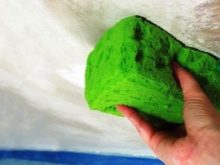 لتحضير المعجون ، ستحتاج إلى وحدة واحدة من الطباشير ووحدتين من الجبس والغراء.. يتم خلط كل هذا بالماء ، وبعد ذلك يجب وضع الخليط الناتج على البقع المعيبة في السقف. عندما يجف ، يجب صنفرة السطح بورق الصنفرة. علاوة على ذلك ، يجب تحضير سطح السقف ، مما يبسط عملية التبييض ، ويتم تحسين خصائص مقاومة الرطوبة للسقف. يجب أن يجف السطح المعالج في غضون 24 ساعة..