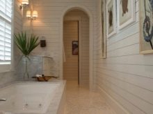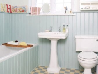 - أصبحت طريقة الجمع بين مواد التشطيب واسعة الانتشار. يمكن استخدام الألواح البلاستيكية مع الجص والمينا بألوان مختلفة. يمكن تزيين الجدران بألواح ضيقة ، ويمكن طلاء المساحة المتبقية بطلاء مقاوم للرطوبة.