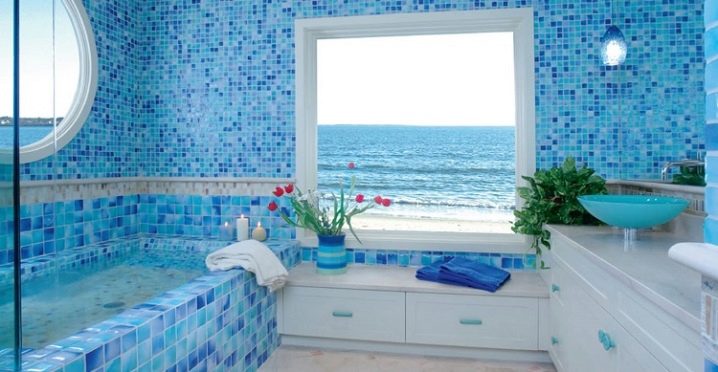 لإنشاء ديكور على طراز البحر الأبيض المتوسط ، يشترون مادة تشطيب تقلد الفسيفساء بأحجام مختلفة. مخطط الألوان الرئيسي لهذا الاتجاه الأسلوبي: ظلال الأزرق والأبيض والفيروزي.