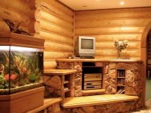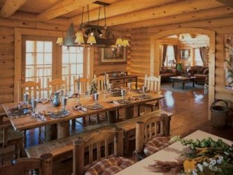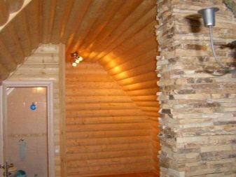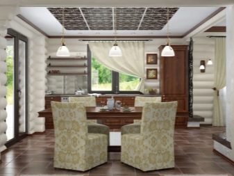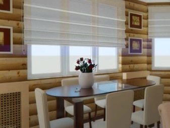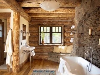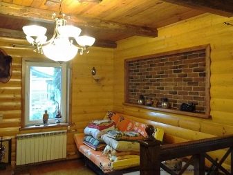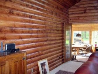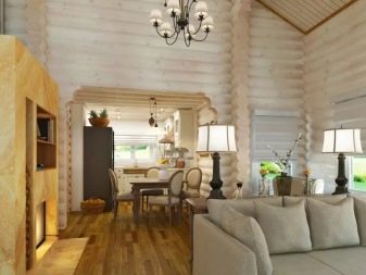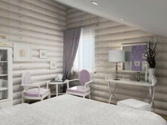 يمكن إنشاء خيار تصميم أصلي باستخدام كل من منزل الكتلة والبطانة في نفس الوقت. يمكنك تزيين مواد البناء هذه ليس فقط بالجدران ، ولكن أيضًا بسطح السقف ، بالإضافة إلى بعض تفاصيل الأثاث..