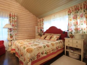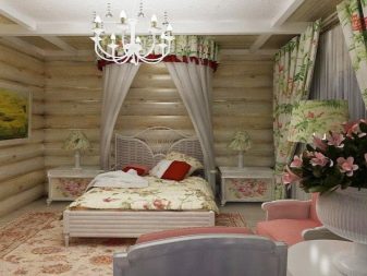 في غرفة النوم ، يمكن إنهاء أحد الجدران فقط ، مما يؤدي إلى خلق جو من الهدوء.. أيضًا ، الخشب ، الذي يطلق مواد مفيدة ، قادر على التأثير بشكل إيجابي على الجسم. يتيح لك استخدام المواد الخشبية إنشاء صورة لملكية فلاحية بسيطة أو ساحة تاجر. يتم استخدام رؤوس وجلود الحيوانات كزينة لإنشاء نزل للصيد..