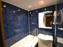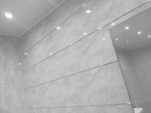 لإنهاء الحمام يوصى باختيار المنتجات التي لا يقل عرضها عن 10 سم ، فهي مزودة بقفل عريض “أوروبي” أو أضيق يسمى “بولكا”. عادةً ما يكون لمثل هذا PVC تصميم جانبي مزدوج ومتوفر بلون واحد وسهل التثبيت. إذا قمت بشراء مادة بعرض 15 إلى 50 سم ، فسيتعين عليك بذل الكثير من الجهد لإخفاء اللحامات. في حالة إجراء التثبيت لأول مرة بيديك ، فمن الأفضل إعطاء الأفضلية لألواح الألواح بعرض 80 إلى 203 سم وطول من 159 إلى 405 سم وسماكة تصل إلى 30 مم. تلتصق هذه الألواح بسرعة وتخلق سطح تشطيب مثالي..