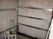 - بعد ذلك يجب تسوية الجدران والسقف بحيث لا تتجاوز الفروق 3 مم. يُسمح بوجود نتوءات وتجاويف طفيفة ، ومن السهل قطعها بمطحنة. يتم إيلاء اهتمام كبير للمفاصل في الزوايا. يجب أن تكون متعامدة تمامًا ، وإلا ستصبح أعمال التثبيت أكثر تعقيدًا ، مما يخلق مشاكل في تثبيت الشرائط الأولية والتشطيب للإطار.
