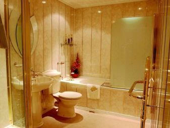 سوف تشير الألواح البلاستيكية ذات لمعان إلى الذوق الرفيع لأصحاب المنازل, التي تستخدم عادة لتزيين الجدران. ولكن عند اختيار طريقة الزخرفة هذه ، من المهم عدم المبالغة في ذلك ، لأن التراكيب الساطعة جدًا لا تعتبر دائمًا ناجحة. يجب أن نتذكر أن الجزء الداخلي من الحمام يجب أن يكون أنيقًا وضبطًا في نفس الوقت. لذلك ، في بعض الحالات ، من الأفضل اختيار الألواح العادية واستكمالها بإكسسوارات جميلة..