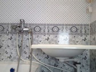 هناك صعوبة إضافية تتمثل في تركيب الألواح البلاستيكية في الغرف المعرضة للرطوبة. يجب تغطية السطح الأساسي بالعزل المائي. يتم تطبيقه على ركيزة مبللة مسبقًا. عندما يجف المنتج ، تتم معالجته ضد فطريات العفن. عند استخدام صندوق مصنوع من الخشب ، يجب أن تأخذ جميع حسابات المسافات من الجدار في الاعتبار تعديل 0.2 – 0.3 سم مرتبط بالانحرافات المحتملة عن الشكل المثالي..