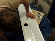 هناك صعوبة إضافية تتمثل في تركيب الألواح البلاستيكية في الغرف المعرضة للرطوبة. يجب تغطية السطح الأساسي بالعزل المائي. يتم تطبيقه على ركيزة مبللة مسبقًا. عندما يجف المنتج ، تتم معالجته ضد فطريات العفن. عند استخدام صندوق مصنوع من الخشب ، يجب أن تأخذ جميع حسابات المسافات من الجدار في الاعتبار تعديل 0.2 – 0.3 سم مرتبط بالانحرافات المحتملة عن الشكل المثالي..