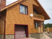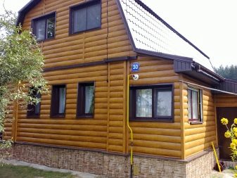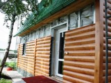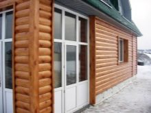 - أصبح تصميم الواجهة باستخدام طريقة منزل الكتلة (من منزل الكتلة الإنجليزية ، حرفيًا – لوح مسطح) ، والذي يعيد إنتاج مظهر المبنى من جذوع الأشجار المستديرة ، شائعًا بشكل خاص. عادةً ما تتم معالجة السجل الحقيقي باستخدام تقنية “مربع في دائرة” بحيث يكون للسطح منصة قاع مستقيمة ومنحنى علوي نصف دائري. يتم طي الجوانب المعدنية لمنزل كتلة وإعطاء شكل مماثل. بعد الانتهاء من المواد المنسوخة في الشكل واللون ، يأخذ المنزل مظهر منزل خشبي.