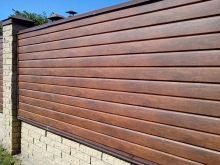 - يعد ملء أقسام السياج بنوع جديد من الجوانب حلاً غير تافه يجمع بين موثوقية المعدن وجمال النمط الخشبي ، ويحمي الموقع بشكل موثوق من أعين المتطفلين. تبقى سهولة التثبيت ، لأن الخطوة الأكثر استهلاكا للوقت ستبقى هي تثبيت دعامات التقاطع. سيكون ملء الفتحة إجراءً بسيطًا إلى حد ما ، حيث لن تكون هناك حاجة لتجميع أقفال الزاوية وإصلاح عدد كبير من شرائط الانتقال..