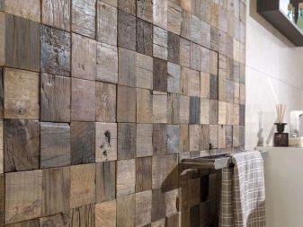 - خشبي. عادة ما تكون مصنوعة من الأخشاب الغريبة (الخشب الصلب) ، ولكن أيضًا من الأنواع المحلية. يتم تشريب بلاط الفسيفساء بمحلول خاص ، بحيث يمكن استخدامه في الحمام ، لكن من الأفضل عدم وضعه في أماكن معرضة للماء المباشر (على سبيل المثال ، على الحائط بجوار الدش).