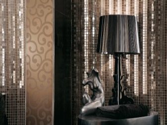 - اللؤلؤ وخيارات أخرى. الإصدار الحصري مصنوع من صدفة اللؤلؤ. ومع ذلك ، فهي باهظة الثمن ، لذلك عادة ما تعمل هذه الفسيفساء كلكنة تصميم. بالإضافة إلى الفسيفساء المطلية باللؤلؤ ، يمكنك أن تجد واحدة بها عناصر من الذهب. تقف مثل المجوهرات.