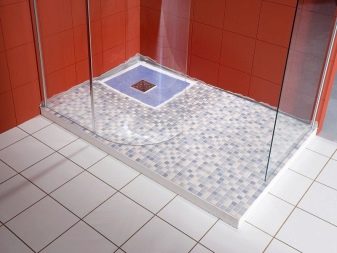 إذا تركت صينية الدش التقليدية وتركت الصرف في الأرضية ، فيمكنك وضعها بفسيفساء ، ولكن أكثر متانة ، من السيراميك.