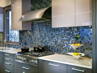 - زجاج. توفر الفسيفساء الزجاجية أفضل خيارات التخطيط. لها نماذج وألوان مختلفة ، وهي مصنوعة من زجاج لامع وغير لامع ، وقد تحتوي على شوائب مختلفة. يتميز بخصائص جيدة جدًا ، لا يمتص الرطوبة ، لذلك يمكن استخدامه في الأماكن الرطبة بشكل خاص (على سبيل المثال ، في الحمام).