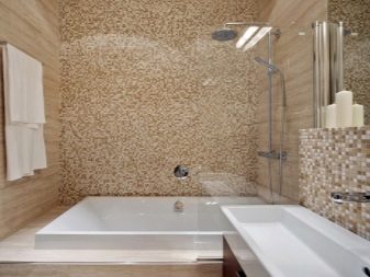 طريقة مثيرة للاهتمام إلى حد ما للكسوة السطحية هي مزيج من مواد مختلفة. يمكنك الجمع بين المرايا والبلاط والزجاج وما إلى ذلك. إذا قمت بذلك ، على سبيل المثال ، في الحمام ، فيمكنك إنشاء نوع من صندوق البلياردو منه ، مما يؤدي إلى تغيير المساحة الصغيرة بشكل جذري ، وتوسيعها وإثرائها بمزيج من الهياكل الزجاجية والكسوة المكسوة بالبلاط..