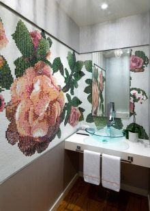 من أجل نقل انتقالات سلسة للألوان وتفاصيل أفضل العناصر ، يتم استخدام قطع الفسيفساء ذات الحجم الأصغر. هذا يخلق تأثير تكامل الصورة وتشبع لوحة الألوان. باستخدام هذه التقنية ، يمكنك إنشاء تحفة فنية ليس فقط على الحائط والسقف وحتى الأرضية ، ولكن أيضًا استخدامها لتزيين أسطح الأثاث..