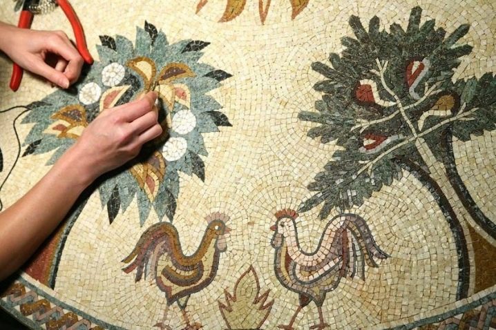 لوحة الفسيفساء: أنواع المواد وطرق التركيب