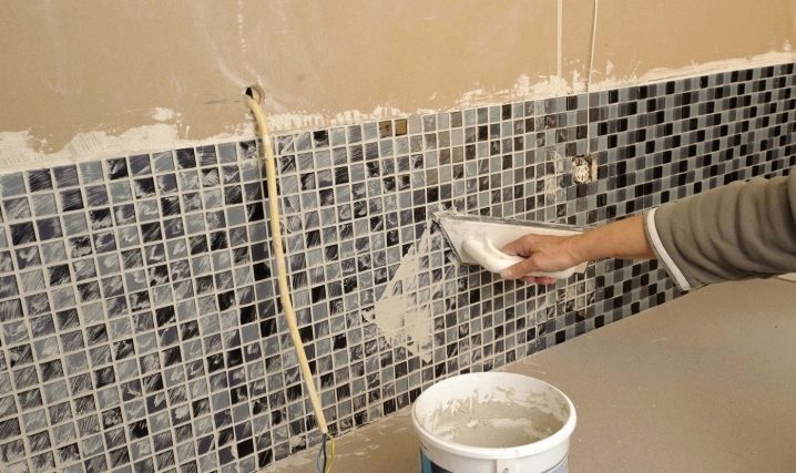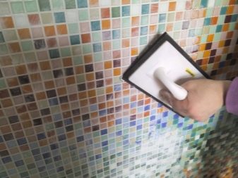 بالنسبة للغرف ذات الرطوبة العالية ، على سبيل المثال ، في الحمام ، يجب استخدام غراء من السيليكون ، وفي حالات أخرى ، يكون محلول البلاط العادي مناسبًا.