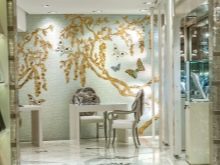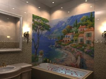 لوحة الفسيفساء ، المجمعة من عناصر فسيفساء متعددة الألوان ، هي عبارة عن عنصر زخرفي فني للغاية. يمكن أن يضيف الحماس والأصالة إلى الداخل ، والتركيز على شيء محدد أو تغيير نسب الغرفة بصريًا..