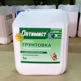 تركيبة Optimist عبارة عن خليط مع إضافات مطهرة. يتم إنتاجه في عبوات سعة 10 لترات بسعر 600 روبل ، وهو أمر ديمقراطي للغاية. الاستهلاك 150-250 مل / م 2. درجة حرارة التطبيق – من 5 إلى 35 درجة. يجف التكوين في غضون ساعتين ، مما سيساعد على تقليل مدة أعمال الإصلاح. من بين مزايا البرايمر الوقاية من العفن. العيب الوحيد لهذا المزيج هو الرائحة الكريهة..