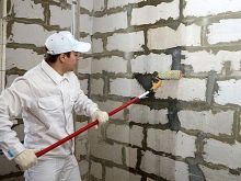 يجب تطبيق مخاليط التربة الأكريليكية ذات الاختراق العميق بطريقة خاصة ، بعد فحص السطح مسبقًا بحثًا عن تشققات أو شقوق. إذا تم العثور على ثقوب كبيرة جدًا ، يتجاوز قطرها ملليمترًا ونصف المليمتر ، فمن المستحسن إغلاقها بالمعجون ، لأنها لن تزيد من استهلاك المحلول فحسب ، بل تؤثر أيضًا سلبًا على خصائص نفاذية البخار للقاعدة . بعد الفحص ، يوصى بتنظيف الجدار على الفور من آثار الصدأ ، لأنه مع زيادة حموضة التركيبة ، حتى نسبة صغيرة من الصدأ يمكن أن تسبب تفاعلًا كيميائيًا غير ضروري.