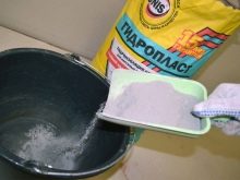 إذا قمت بتخفيف الأسمنت أو الطباشير بتركيبة بسيطة تعتمد على الغراء ، فيمكنك الحصول على برايمر مع اختراق عميق. تسلسل الإجراءات متطابق تقريبًا ، ولكن الآن نسبة الغراء والماء هي 1: 8. أضف كمية صغيرة من الأسمنت (أو الطباشير) إلى المواد المختلطة وحركها جيدًا حتى تصبح ناعمة.