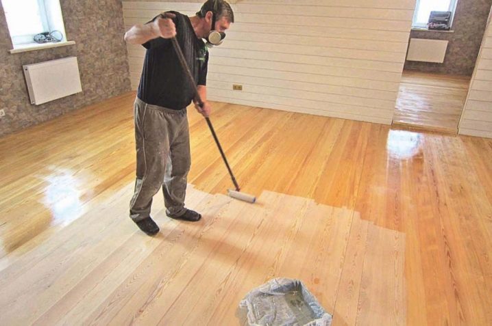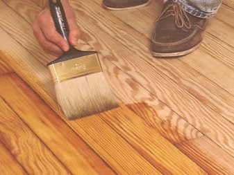 قبل تطبيق المادة ، من الضروري القيام بالأعمال التحضيرية لإعداد القاعدة. يتم تسوية السطح الخشبي عن طريق الطحن ، ويتم إصلاح جميع الشقوق. بعد تنظيف القاعدة من الغبار والأوساخ ، ابدأ عملية الطلاء.