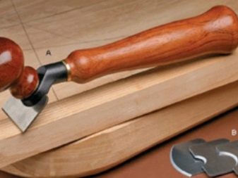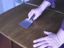 جوهر هذه الطريقة هو أن الورنيش مقشر عن السطح. من المريح القيام بذلك باستخدام دورة (أداة خاصة تشبه صفيحة فولاذية مشحونة بعناية بمقبض). الضغط على القاعدة قوي جدًا لأن المقبض مائل. يمكنك شراء هذه الأداة أو إنشائها بنفسك..