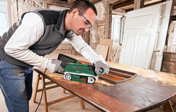 الأكثر تكلفة من حيث التكلفة هي آلات الاهتزاز. بمساعدة هذه الأجهزة ، يمكنك تنظيف قطع الأثاث من الورنيش. ضع ورق الصنفرة على “نعل” الجهاز. ثم يمكن استخدامه. عادة ما يظهر الكثير من الغبار أثناء هذا العمل ، لكن هذه الطريقة أكثر فاعلية من صنفرة السطح يدويًا. القاعدة أكثر سلاسة وأكثر إرضاء من الناحية الجمالية.
