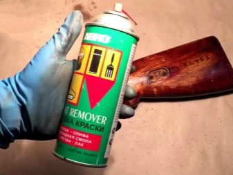 يمكنك أيضًا استخدام علب الرش لإزالة الورنيش من الخشب. تتكون طبقة رغوية على الركيزة المعالجة. هذه الأدوات ملائمة للاستخدام ، لكنها مناسبة فقط في الحالات التي يكون فيها حجم العمل ضئيلًا..