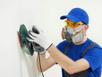 يبدأ الصنفرة بالتحضير. ارتدِ معدات الحماية الشخصية ووفر إضاءة مناسبة وجيدة في الغرفة. إزالة النتوءات الكبيرة وعيوب المعجون باستخدام ملعقة. بعد أن نجهز أداة العمل ، نصلح الشبكة أو الورقة على الشريط. دلتسهيل العمل ، يمكن تقسيم السطح بالكامل بصريًا إلى أقسام مترية ومعالجتها بدورها.