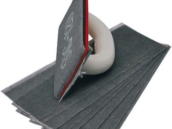 - زوايا المعالجة وغيرها من المناطق التي يصعب الوصول إليها. بالنسبة لهم ، يتم توفير جلود ذات زوايا مشطوفة أو ببساطة ورق صنفرة متداخل في النصف.