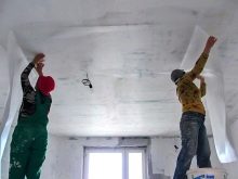 بعد تقوية الجدران والانتهاء من أعمال التعزيز ، يتم تنفيذ معجون التشطيب الذي لا يختلف عن المعجون الرئيسي. يتم تطبيق المادة بسمك حوالي 1-2 مم.