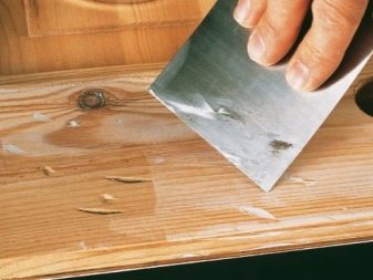 يسبق تطبيق المعجون تحضير الخشب. يجب إزالة الطلاء القديم ، وإلا فقد يؤدي ذلك إلى تأخر التكوين من القاعدة. يمكن إزالته ميكانيكيًا عن طريق كشط السطح أو باستخدام مذيب. في الحالات الصعبة بشكل خاص والمساحات الكبيرة ، يتم استخدام مجفف الشعر. يتم وضع طبقة رقيقة من الغسيل على السطح ليتم معالجته بفرشاة أو مسدس رش لمدة 15 دقيقة. يرفع التركيب الكيميائي الطلاء ، وبعد ذلك يتم إزالته بملعقة.