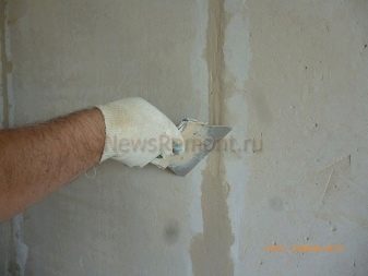 بعد التطبيق ، اجعل طبقة البداية متساوية بين المنارات باستخدام قاعدة. هذا أسهل بكثير عندما يكون هناك فجوة صغيرة بين التركيبات. لجعل طبقة المعجون كثيفة قدر الإمكان ، قسّم العملية إلى مراحل معينة. من الأفضل أولاً وضع المادة على الحائط على مسافة نصف متر من الأرض ، ثم يمكنك الانتقال إلى مناطق أخرى. إذا قمت بكل شيء خاطئ ، فمن المحتمل تمامًا أن يتم تصريف المعجون من الأعلى على الطبقة السفلية ، وسيصبح السطح غير مستوٍ..